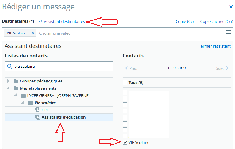 S'il figure déjà dans vos contacts, il suffit de taper "vie scolaire" (sans les guillemets) dans la barre des destinataires.